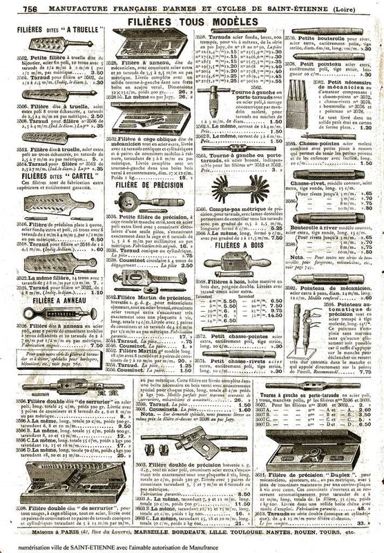 Regarde un vieux catalogue, Manufrance 1910, pour voir l'outillage disponible pour un artisan...