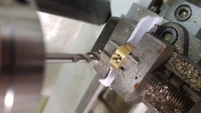 Dernière étape "fonctionnelle" : tournage des paliers au tour. Comme les dimensions sont déjà très petites, j'ai décidé de ne pas faire de palier bronze rapporté, et de tailler dans la masse de la tête de bielle (en laiton du coup... pas idéal mais pour un moteur naviguant je pense que les problèmes d'usures seront limités)