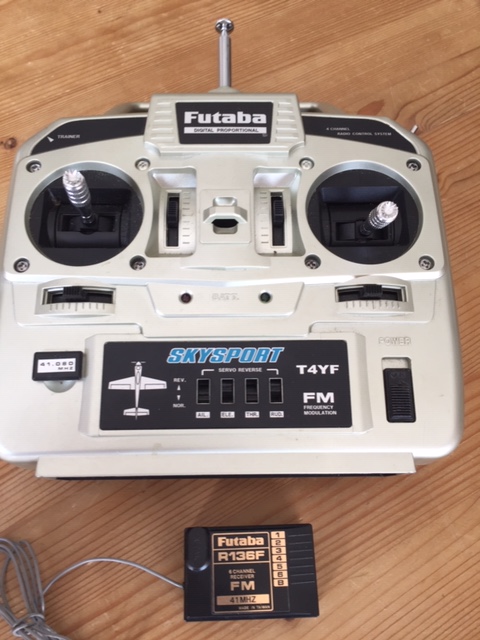 - radio FUTABA T4YF Skysport - 41.080 Mhz et son récepteur FUTABA R136F 41 Mhz. (8 accus dans la radio).