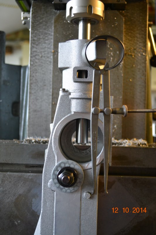 (Ph 7 & 8) contrôle de l’équerrage de la broche. Le bon vieux compas de mesure reste une valeur sûre dans des situations ou les instruments conventionnels n’ont pas accès.
