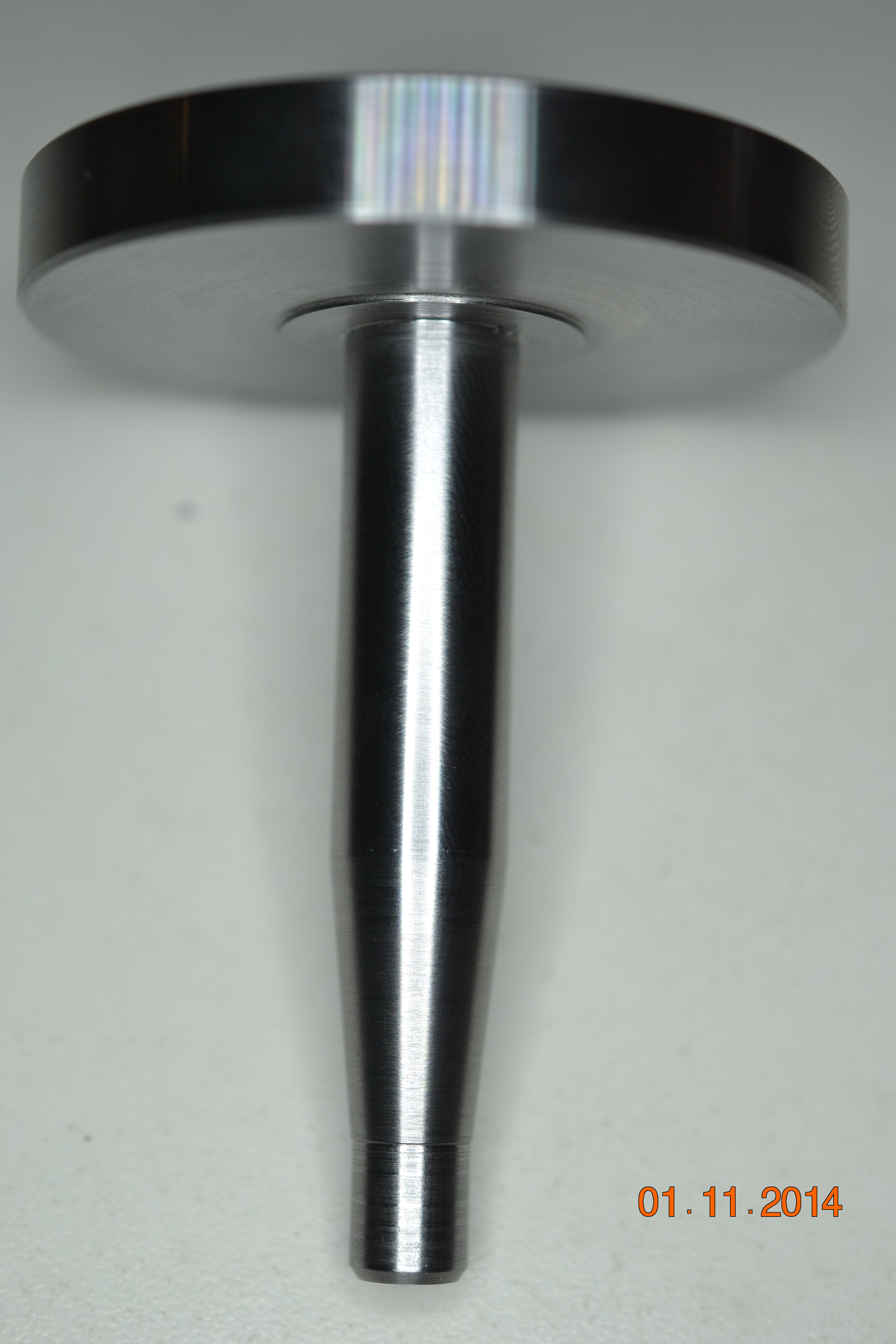 (Ph 21) Usinage sur le tour du filet de fixation du volant. Le fait d’exécuter cela à la machine garanti le parfait centrage de la vis.