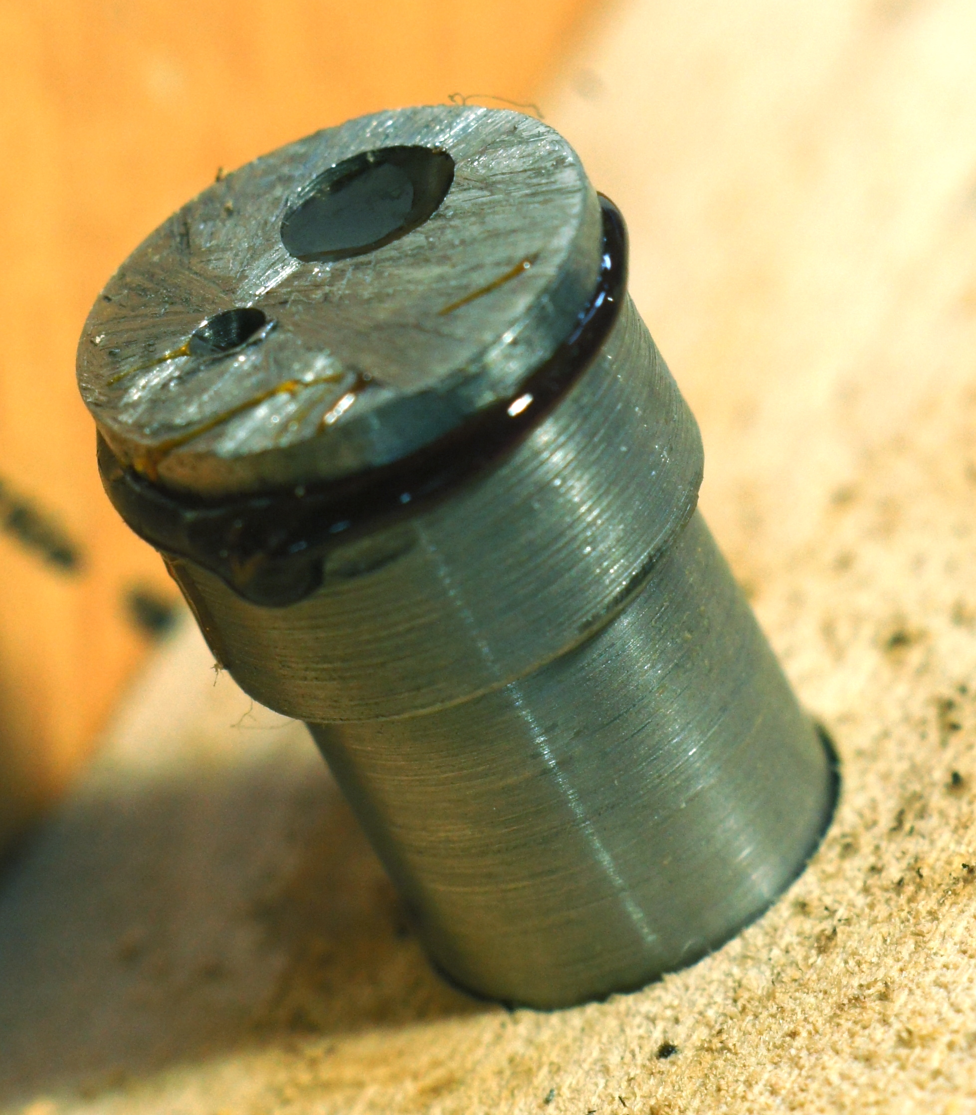 Ça m'a permis de tester une solution pour rapporter un filetage sur une pièce peu épaisse : décolleter un écrou pour collage ou brasure tendre. C'est plus rapide que tourner des inserts.
