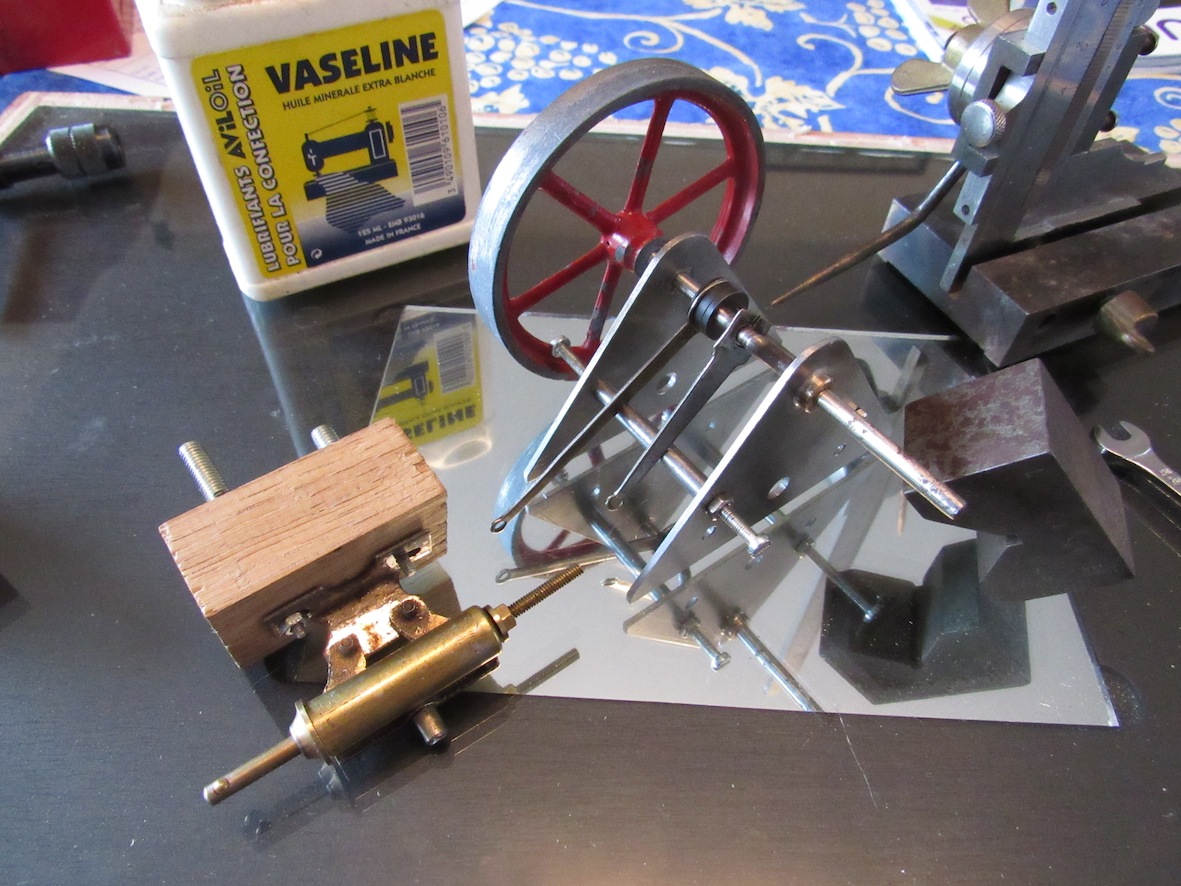 La fixation de l'excentrique du tiroir et du volant est spéciale : ils sont "frettés" sur le vilo qui est poinçonné en cercle au bon emplacement. Les bavures du poinçonnement faisant office de blocage !