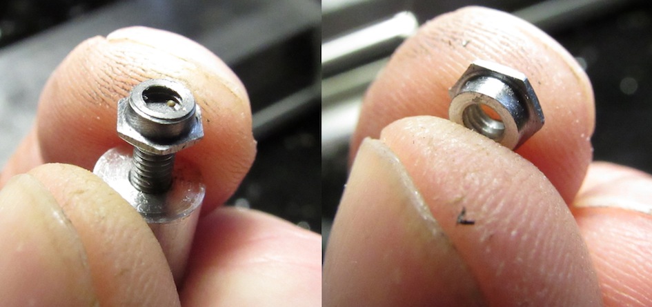 A gauche un écrou &quot;raté&quot; sur le montage.<br />A droite un écrou réussi.
