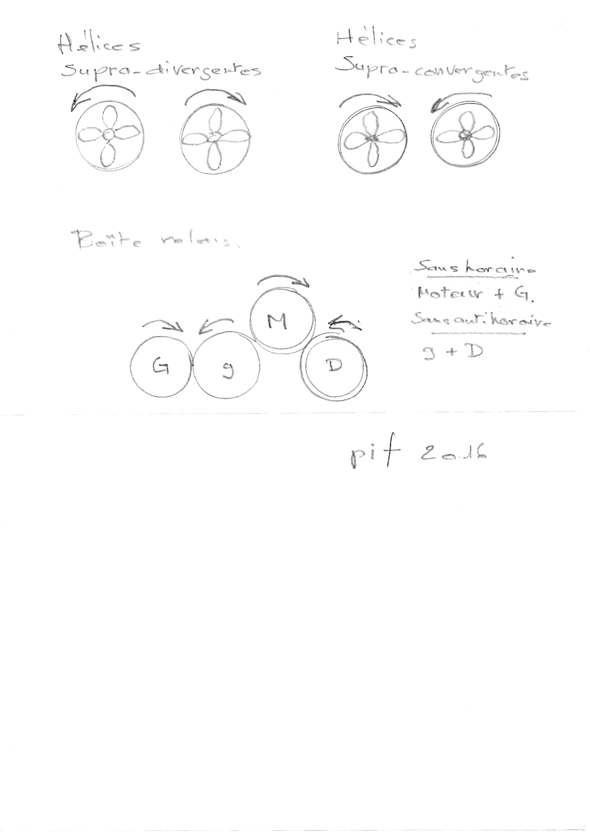 On peut faire tourner les arbres dans le même sens en utilisant une hélice a pas inversé et l'autre normale .