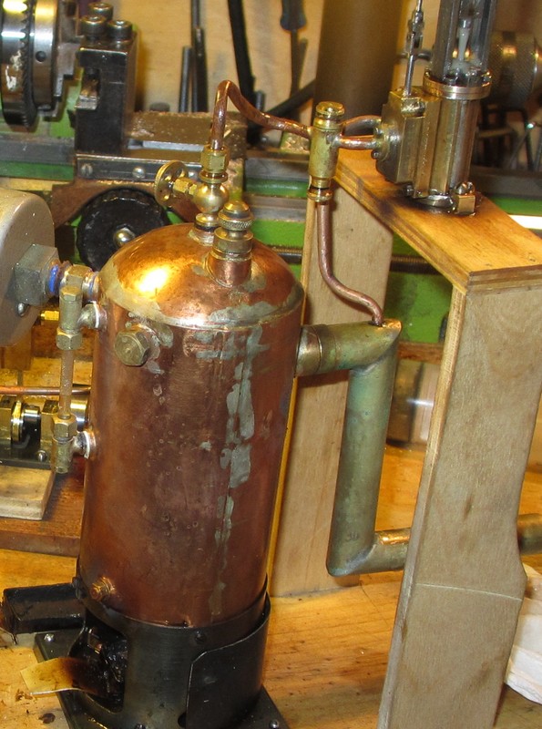 Pour un modèle de taille nettement plus modeste, voila une petite chaudière faite avec une feuille mince (dans les 0.6 mm) en cuivre recyclé, roulée et brasée à l'argent, avec le recouvrement des bords comme indiqué par Paterson.