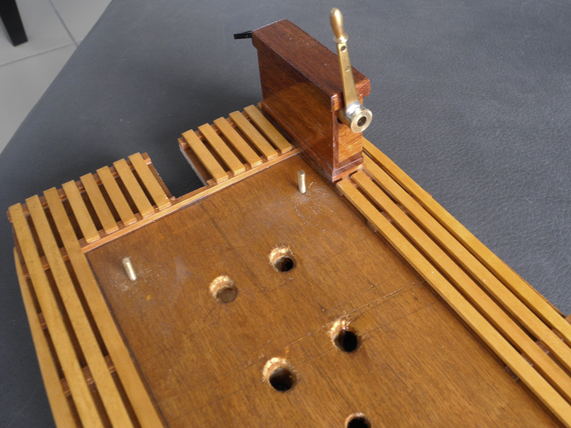 -aucune recherche de réalisme ni de respect d'échelle parce que j'aime le caractère "jouet" et que ce bateau a été construit avec cette idée d'où des surdimensionnements, des aménagement non à l'échelle et parfaitement irréalistes mais avec, tout au moins je l'espère, un résultat cohérent avec l'idée qui était aussi de rechercher la simplicité et la solidité.