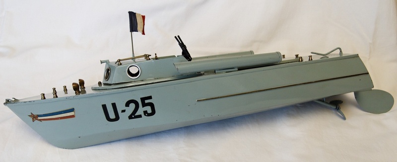 Je voyais un truc de ce genre, plutôt genre canot jouet ancien, dans les 450mm de long, je me suis fait un plan et un modèle en bristol, pour faire une coque en tôle étamée, mais je trouve ça minuscule, j'ai bien peur que ça coule direct dès la mise à l'eau... Il faudra donc une réserve de flottation...