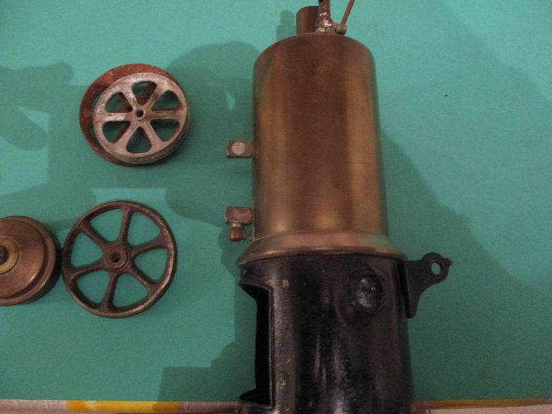 je lui ai refait les éléments manquant,niveau d'eau,cheminée,soupape de sécurité et un moteur a tiroir cylindrique trouvé sur le site de jacques987
