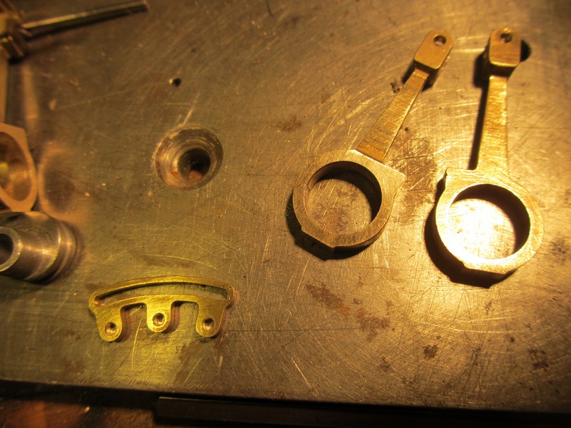 https://youtu.be/Tg3o8XegtEw Voici les ébauches en zamak donc. Je suis sûr que j’aurai usiné ces bielles à partir d’une barre de bronze plus rapidement et plus précisément qu’à partir de ces fonderies, bien sûr difficiles à reprendre pour les usinages, entre pointes et sur faux-axe en mandrin, mais c’était pour m’amuser un peu. L’usinage du zamak est assez facile, et ça a l’air assez résistant, je verrais l’usure.