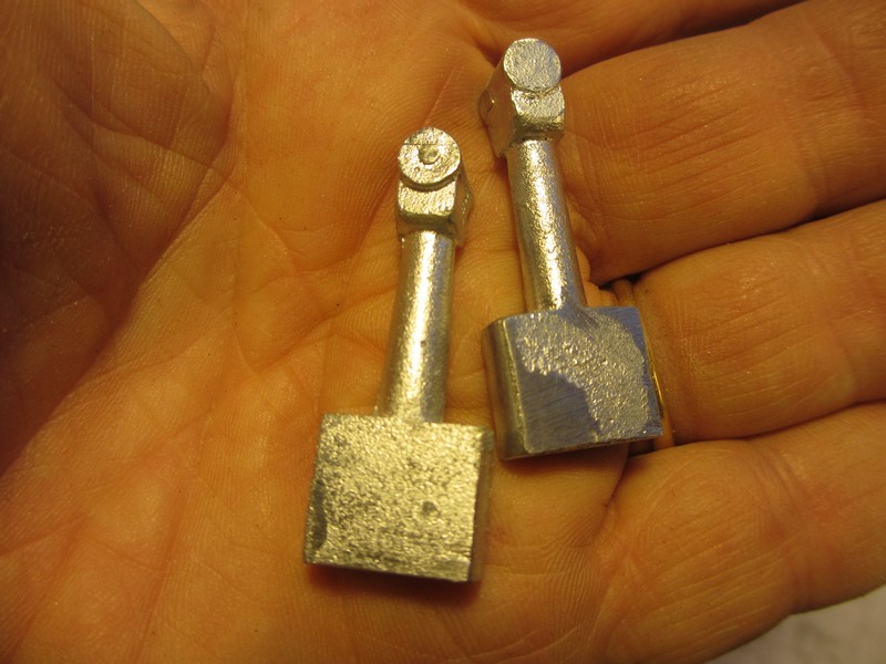 J’ai fait comme prévu 2 petites fonderies pour les bielles, en zamak, car je n’ai pas réussi à chauffer assez pour du laiton, (dommage car j’ai plein de chutes de laiton à fondre…) je suis au fond de ma bouteille de propane, et il n’y a plus trop de pression ? Ou il faisait trop froid ?