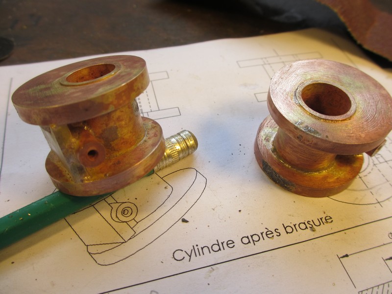 Je suis bien content d'avoir eu ces supports, car leur fabrication semble très laborieuse, y compris la fabrication de plusieurs guides et supports de brasage et usinage. Les cylindres, réalisés par montages en laiton brasé, je préfère de loin des fonderies comme celle de l'AL5 d'A. Lecomte.