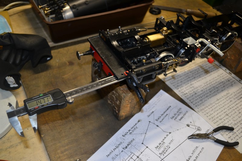 en tournant les roues trouver le point mort AV et mesurer entre l'axe de commande de la coulisse et l'axe de la contre manivelle