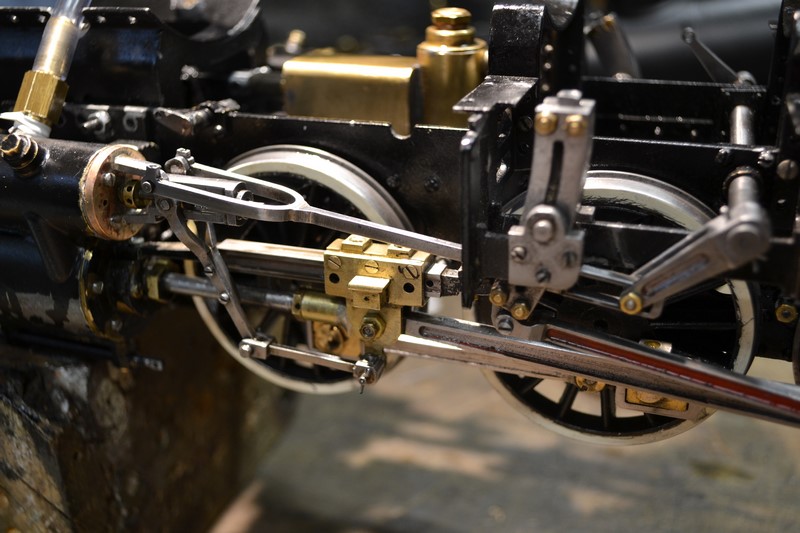 une autre biellette longeant la chaudière et traversant la cabine permet l'action sur les purgeurs soit manuellement soit par radio commande.