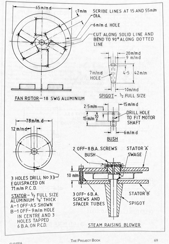 Comme pour le charbon, si la chauffe à l'alcool se fait par un foyer interne et des tubes de fumées, il faut un tirage "artificiel" au démarrage pour évacuer les gaz brûlés, avant que le souffleur et/ou l'échappement par la cheminée prennent la suite. C'est impossible de mettre en chauffe sans ce ventilateur.