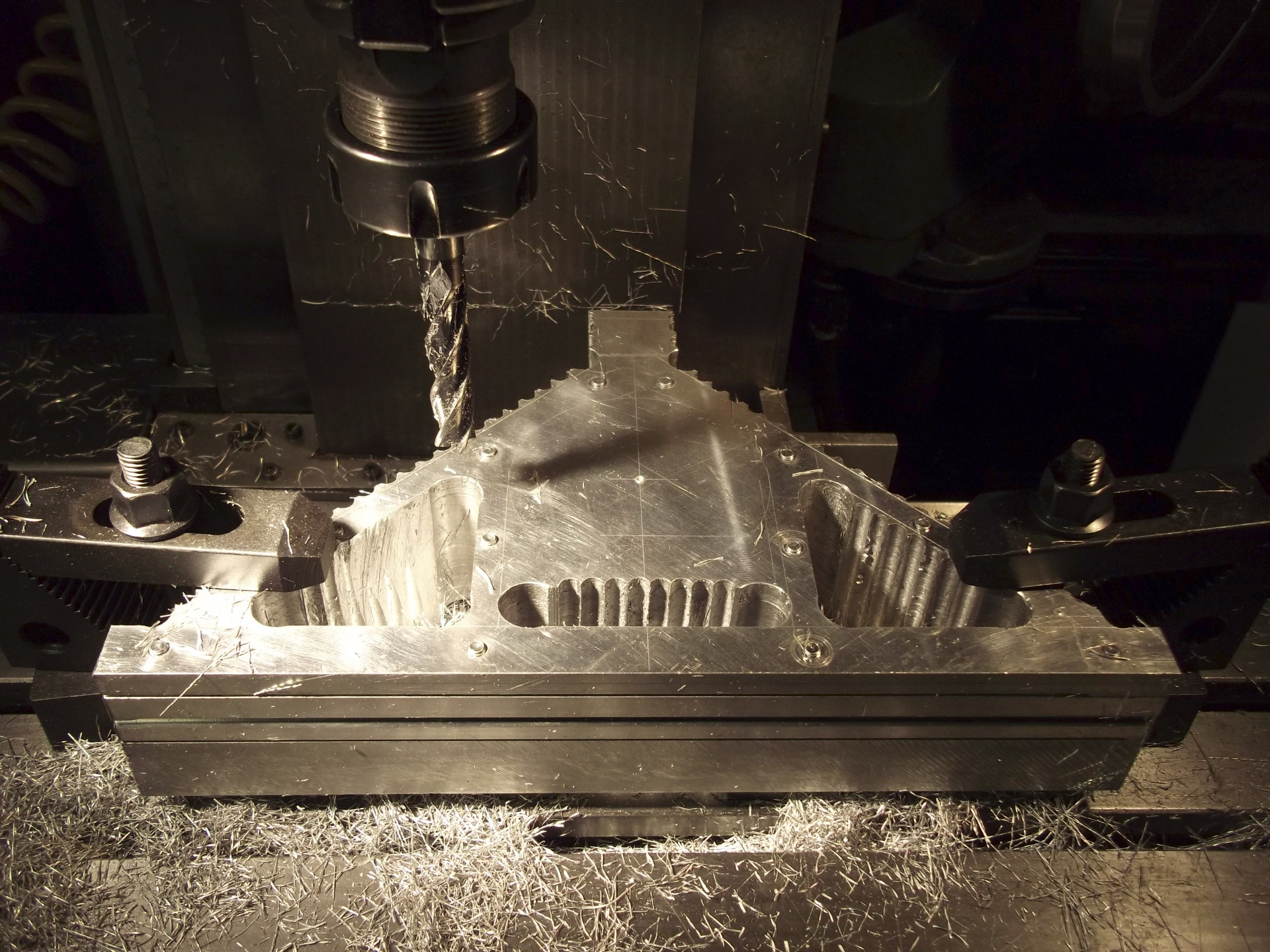 Bonsoir à tous, me revoila aprés une absence prolongé. Aprés avoir récupérer les plaques alu et les avoir assemblé pour avoir les dimensions voulu, je me retrouve avec un bloc de 290x165x56. Y a plus qu'a faire des copeaux