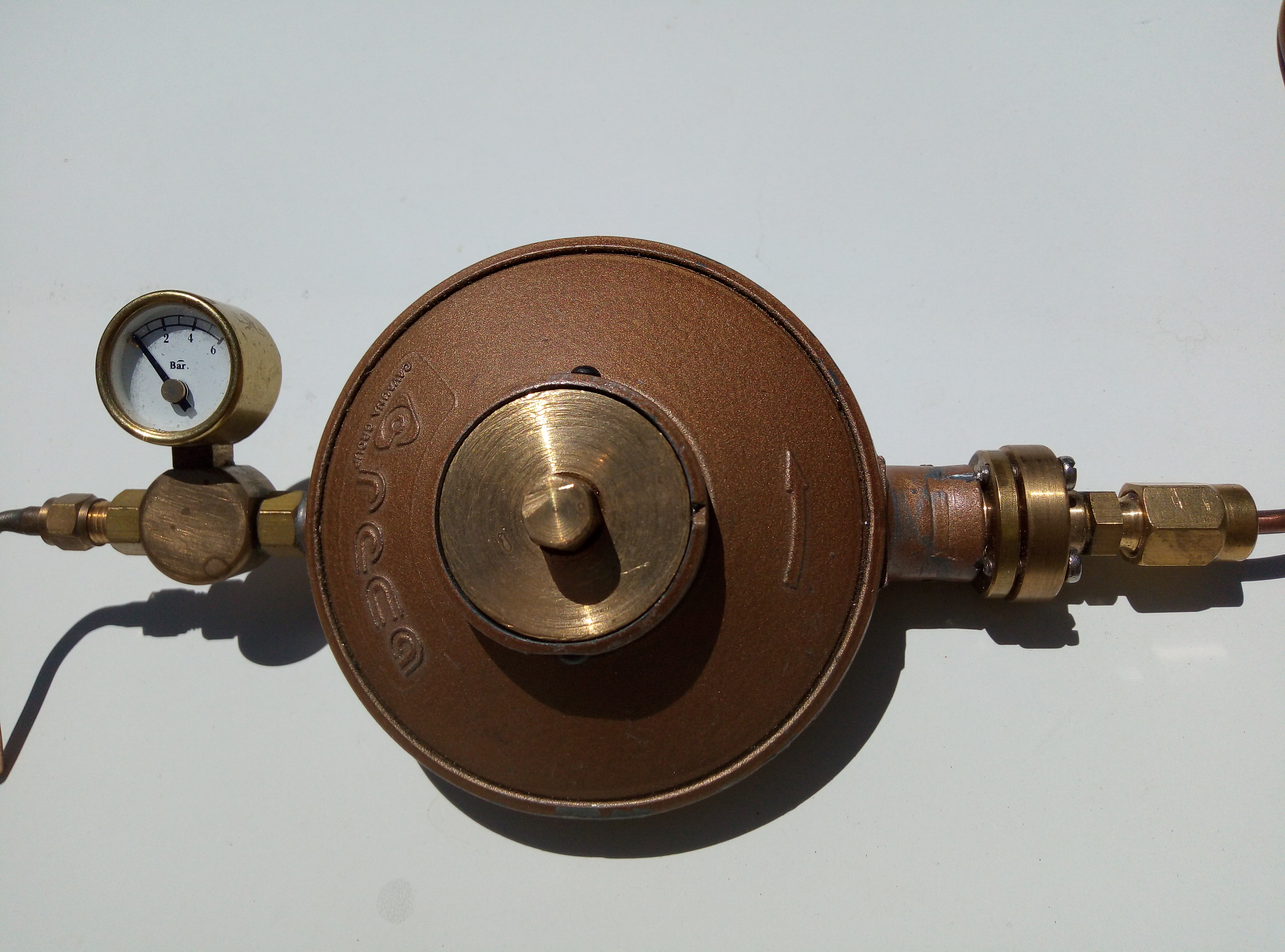 Max, alias Maximus pour le forum a eu l'extrême gentillesse (une habitude chez lui ;-) ) de m'offrir celui qu'il a aussi fait sur la base de ce plan, en laiton, il a utilisé une membrane en silicone pour cuisson haute température (250°C) de 0,8 mm d'épaisseur environ et en plus il a monté un manomètre de contrôle de pression de sortie : https://www.youtube.com/watch?v=BWn7UvgWS2c :bravo