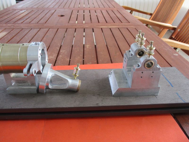 début d'un moteur bicylindres tandem a double effet ,une chambre de combustion de chaque coté des pistons :o ,d'apres les plans de Doug Kelley .