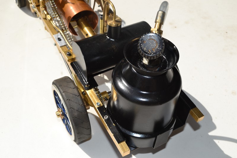 pour le huileur à déplacement, il ne me parait pas trop petit, tu dois pouvoir régler la consommation d'huile pout tenir plus de 30 minutes avec le pointeau que je distingue sur la dernière photo, sinon, le graisseur condense de trop, il faut le rapprocher de la chaudière.