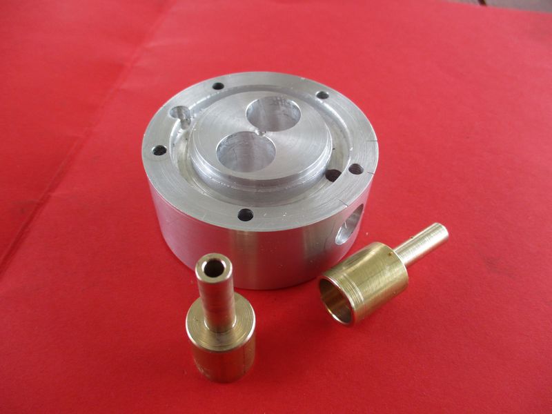 voila la culasse et ses soupapes ,comme j'ai fait la culasse en alu j'ai fait les guides soupapes avec un siège inclus .