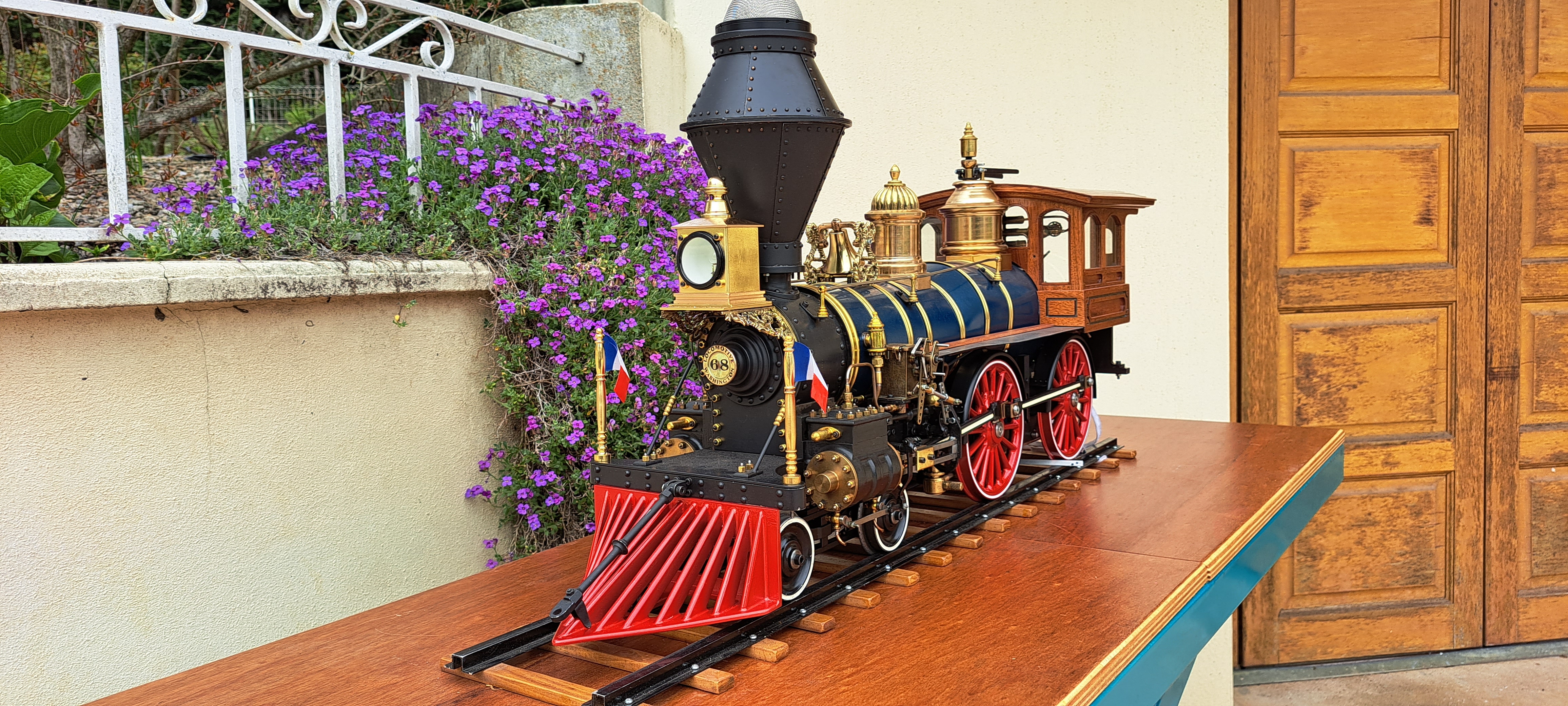 la loco est enfin terminée , il me reste juste les 2 chemins de marche de chaque côté de la chaudière a latter de bois .