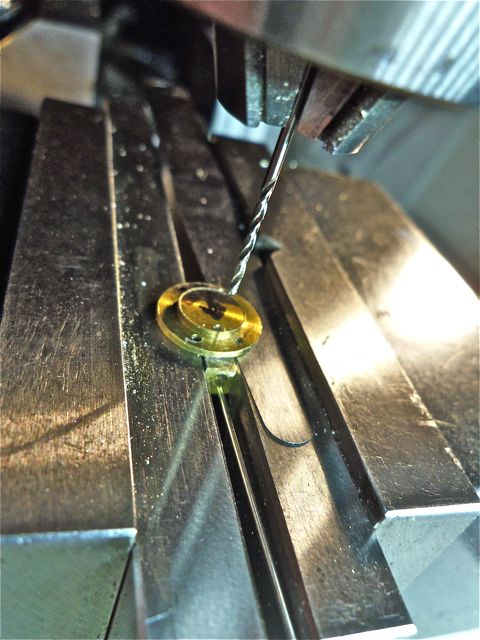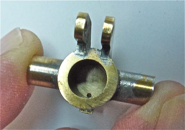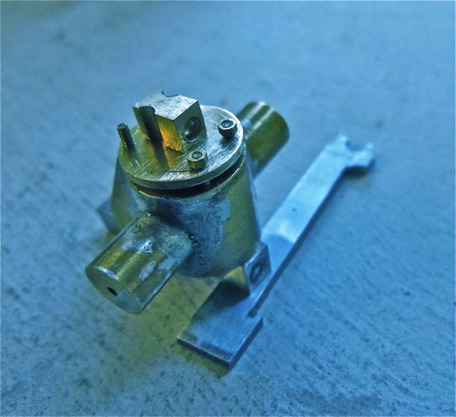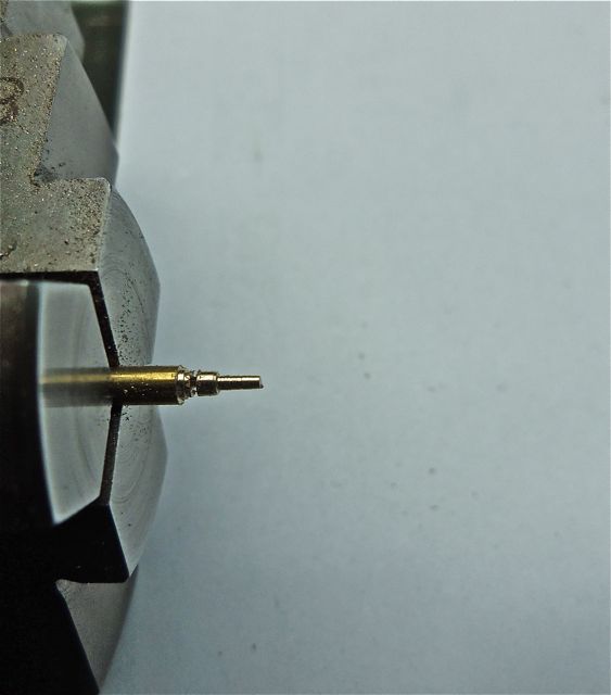 La tige du piston fait 1,5 mm de diamètre.. et je n'ai pas voulu y faire un filetage 1x 0,25.. J'ai préféré une goupille légèrement conique ( 0,8 -> 0,7 ) avec une extrémité sup. orientée à 30° vers l'extérieur et aplatie pour extraction; elle n'est pas bloquée ni collée pour l'instant.