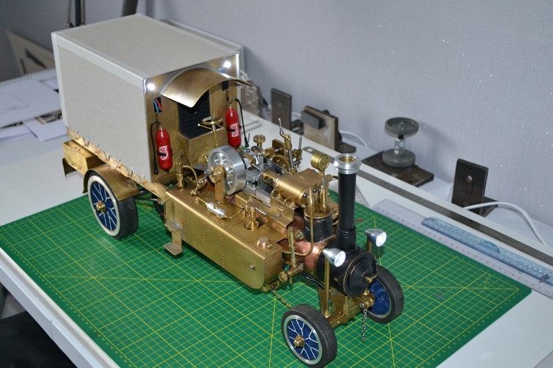 les aléas de la vie m'ont coupé de mes occupations de modéliste mais je retrouve progressivement mon atelier et ce camion à vapeur sorti de mon imagination ,encore beaucoup de détails à réaliser.