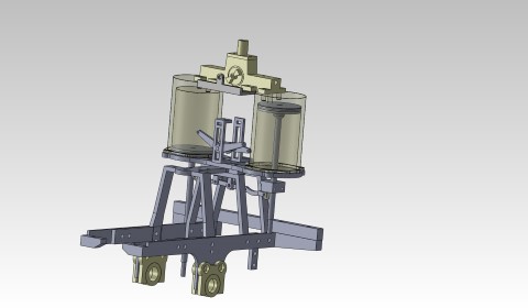 2 cylindres simples effets alimentés par un distributeur lui-même actionné par une distribution à chaine.