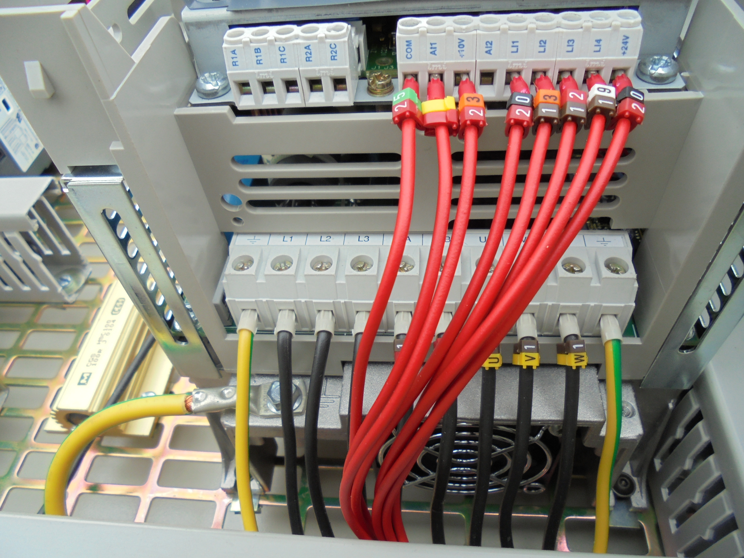 si le schéma correspond au câblage et les repère aussi, il te faut alimenter en 220v et la terre les borne L1 et L2 pour que le transfo soit alimenté en 220v au primaire mais je reste persuadé que le var ,si il se met sous tension va afficher une erreur .