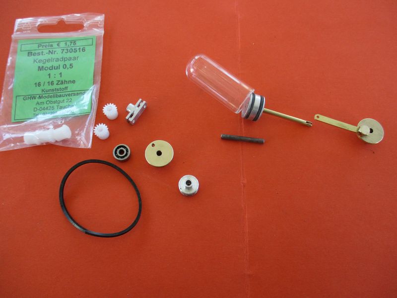 la partie moteur,piston en graphite,chemise en verre (seringue) ,piston déplaceur alu,corps de chauffe et cylindre