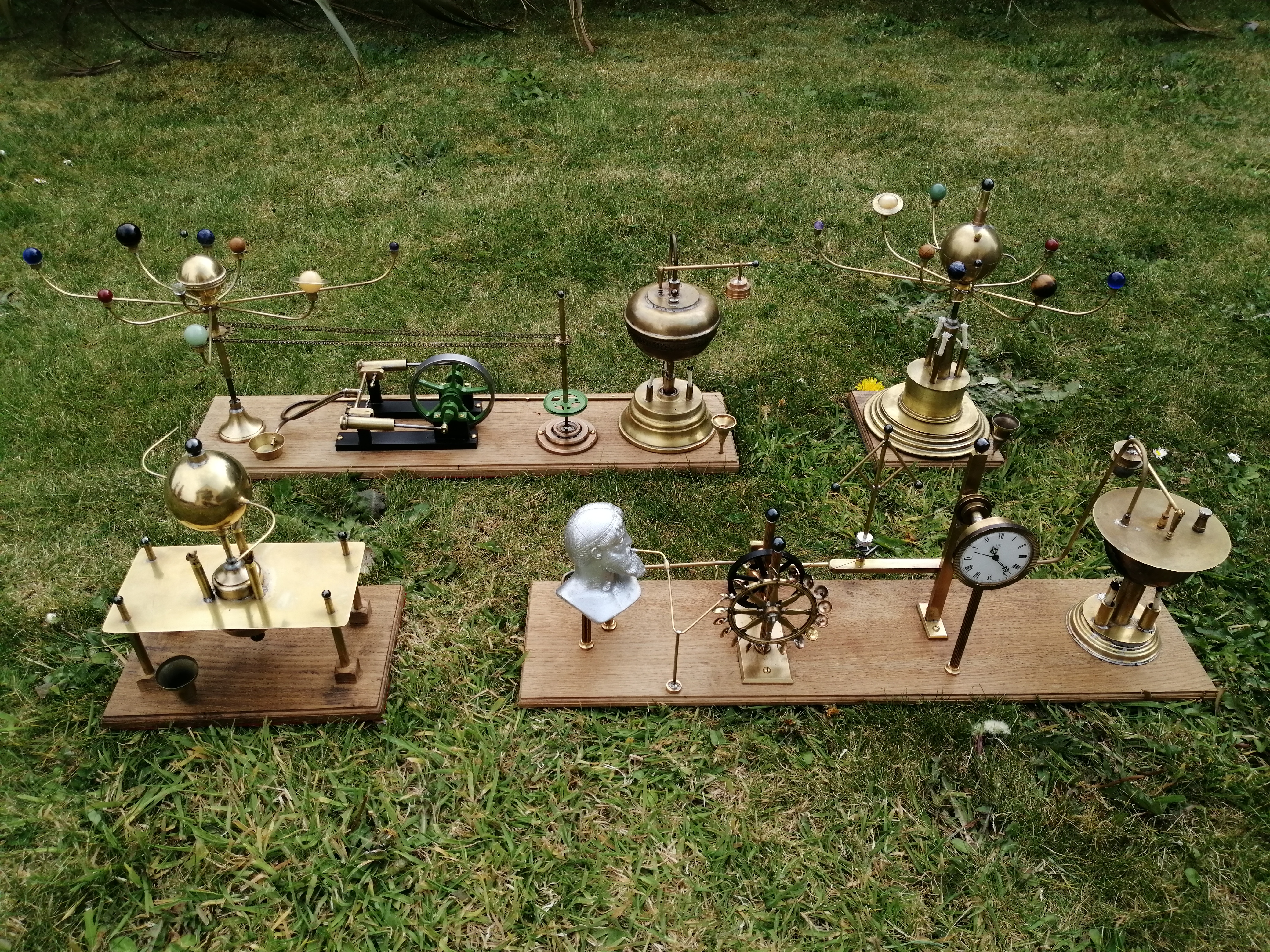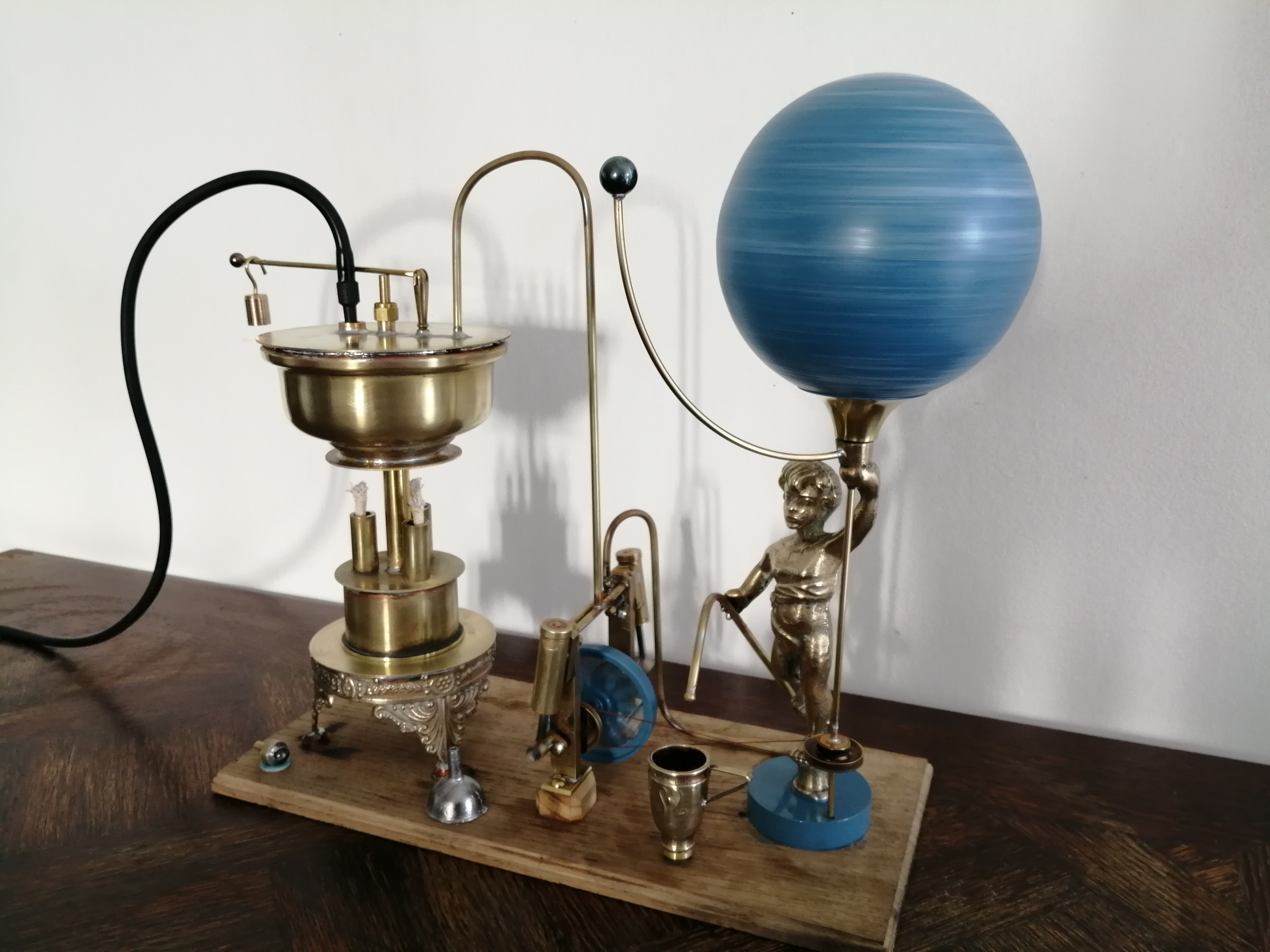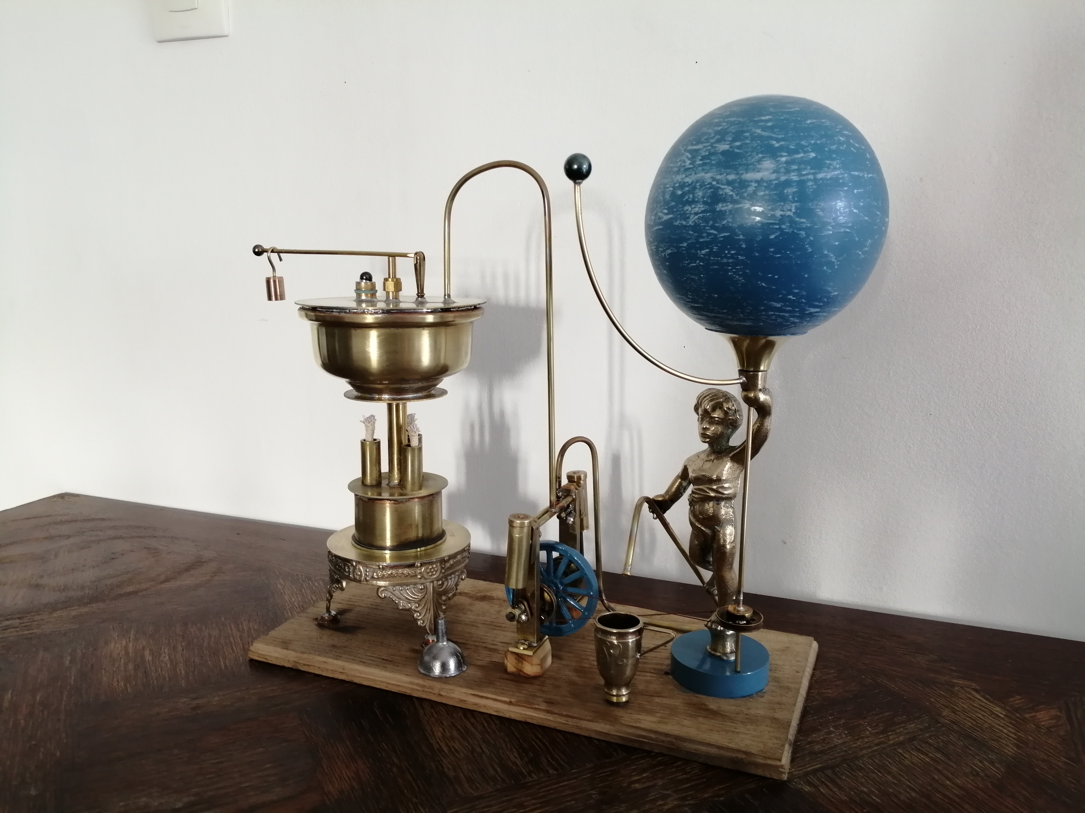 Bonsoir à tous, concernant la photos des 4 machines, il s'agit de 2 EOLIPYLES de ma création dont 1 qui fait tourner les 9 planètes du système solaire, concernant celle à remonter le temps c'est un modèle qui reprend la machine de" Branca "avec un entraînement par mono cylindre oscillant qui fait to...