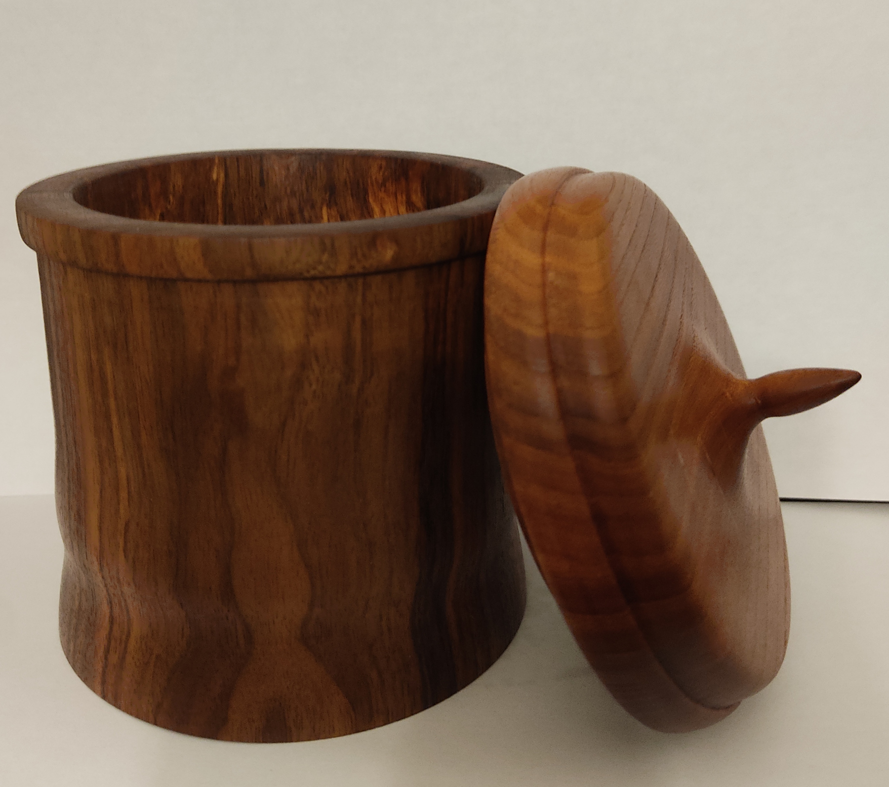 Je viens juste de terminer une petite bonbonnière en Noyer et couvercle en Orme :)