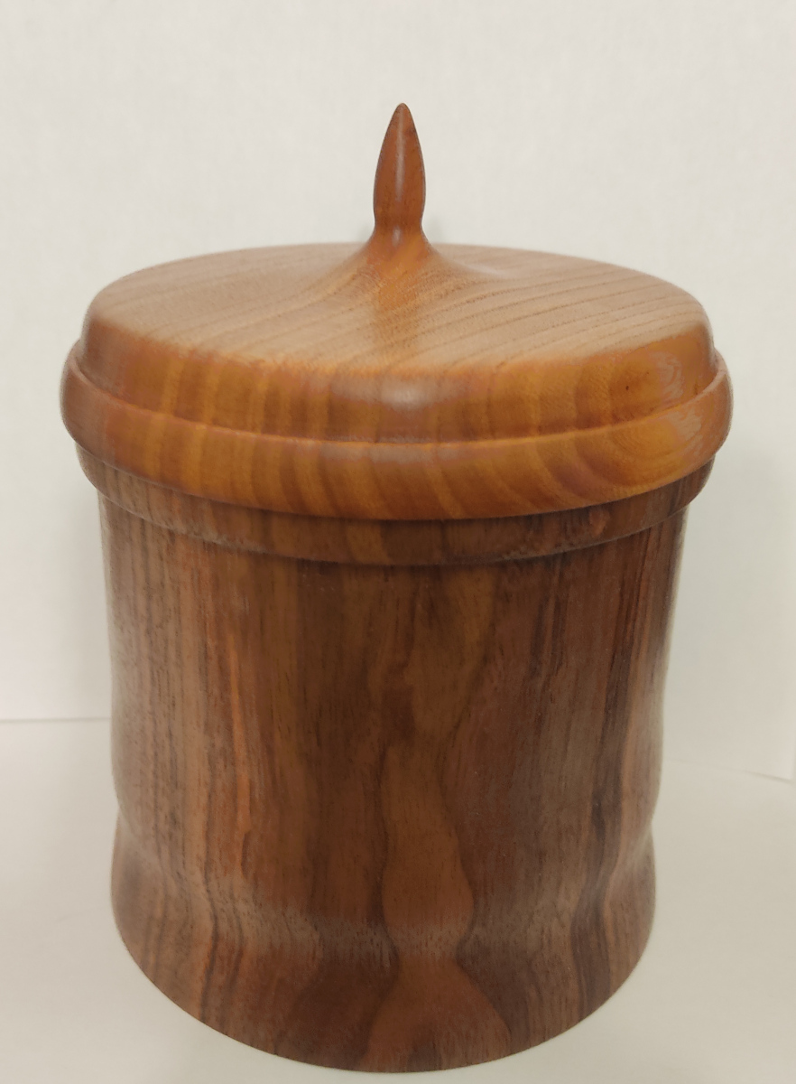 Je viens juste de terminer une petite bonbonnière en Noyer et couvercle en Orme