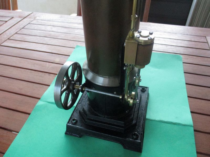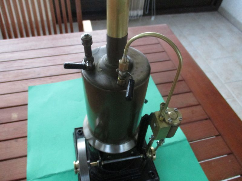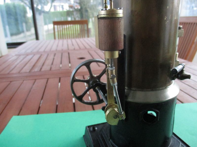 je lui ai refait les éléments manquant,niveau d'eau,cheminée,soupape de sécurité et un moteur a tiroir cylindrique trouvé sur le site de jacques987