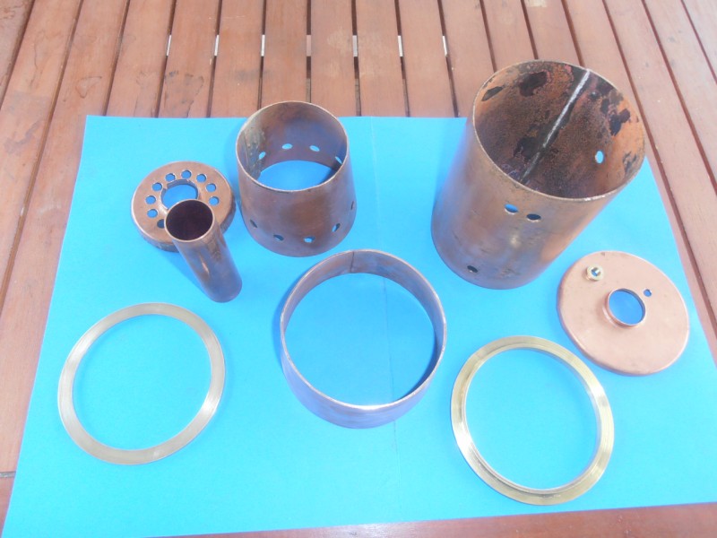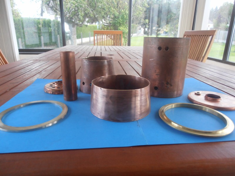 les elements de la chaudiere,il reste les tubes de chauffe et la partie haute (boite a fumée ) a realiser