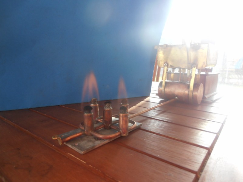 sur mon tank à alcool Saïto, le carburant arrive dans le brûleur grâce à une mèche qui plonge dans le tank, et se termine à l'orifice du pointeau.