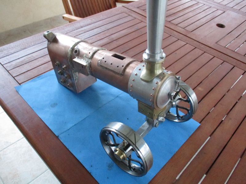 Peut-être en remplissant la chaudière au dessus des 3 tubes de fumées, pour bien utiliser la chauffe, et avec un brûleur plus puissant ? remplir d'eau bouillante et avec un chalumeau d'appoint extérieur pour faciliter le démarrage, tu devrais réussir à faire un tour de quelques minutes.