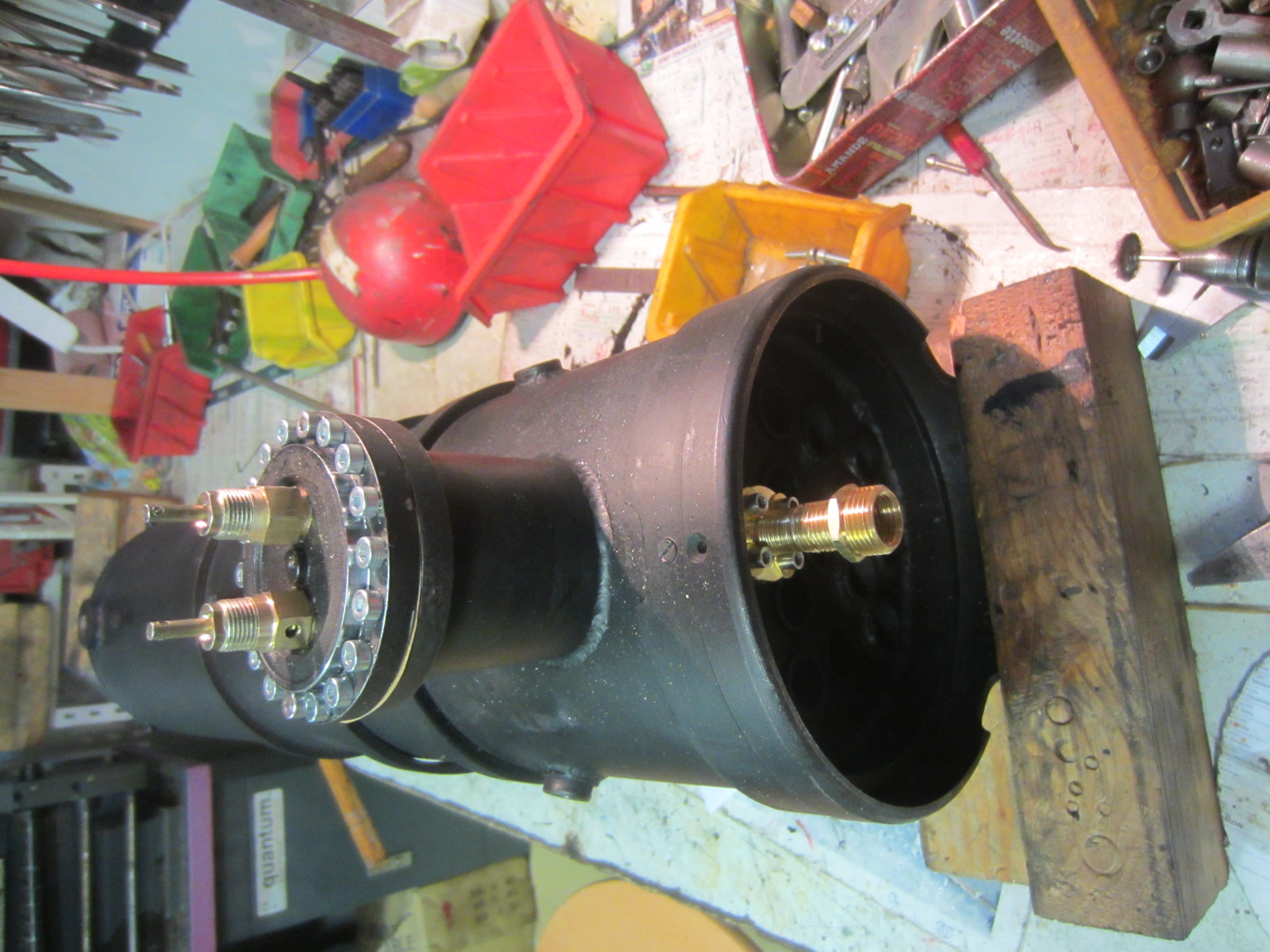 pour passer la tuyauterie de l'injecteurc'est trés difficile , les passages n'avaient pas été prévu....la solution est de mettre la loco sur le coté, mais ça pese 100 kilogs...l'ami J-C lABROT m'a conseille de lever par la chaudiere, et ça c'est fait facilement , j'ai la chance d'avoir une épouse qui me donne les mains et ne craint pas de tenir ,lever , pousser , ranger etc....
