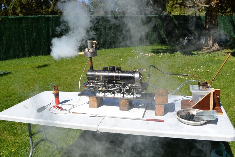 la suite consiste à ouvrir et fermer régulièrement le bypass pour conserver le bon niveau d'eau et recharger en charbon quand le soupape se lève ce qui est facile sur un banc fixe mais certainement plus compliqué sur réseau.