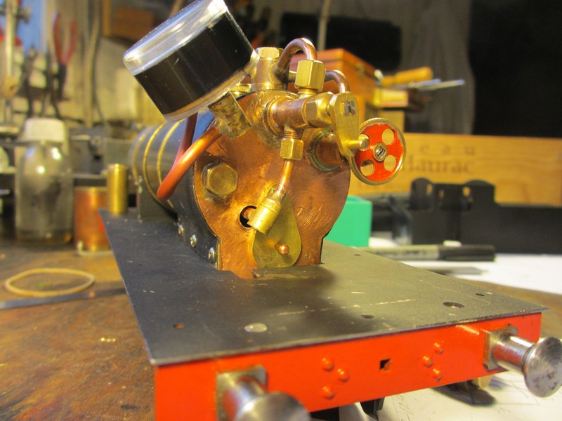 Ce tube de vapeur externe, qu'on voit bien sur la vidéo quand je soulève la machine, est vraiment horrible, on verra après les essais en vapeur, c'est sûr qu'au remontage final je rougirais de honte de laisser ça comme ça !