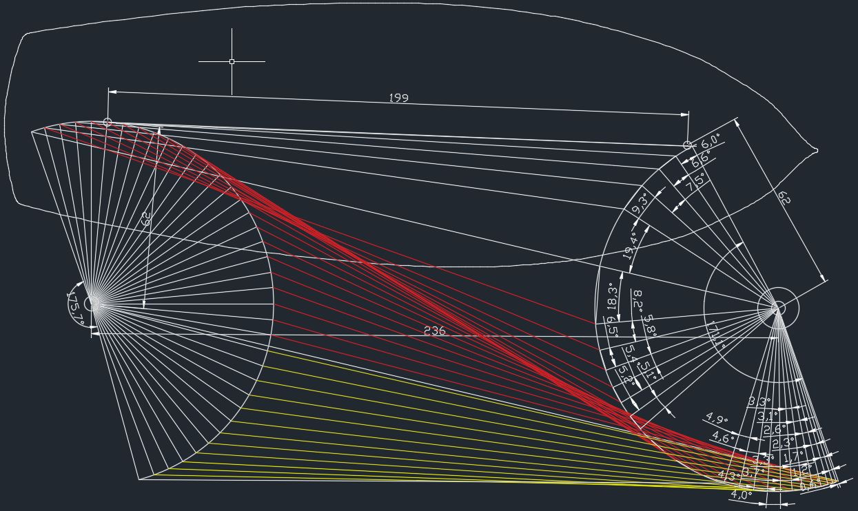 Exactement Papy pop-pop, tu as bien cerné le problème. J'ai fait un tracé de toutes les positions du parcours tous les 5°de rotation de la potence gauche et la correspondance sur celle de droite. En fait on dépasse légèrement: 184°à gauche, 171°à droite. Je pense que les 4° en trop peuvent être oublier et le plus simple sera bien de mettre deux servos, mais du coup, c'est le programme de pilotage qui sera plus complexe :aie:
