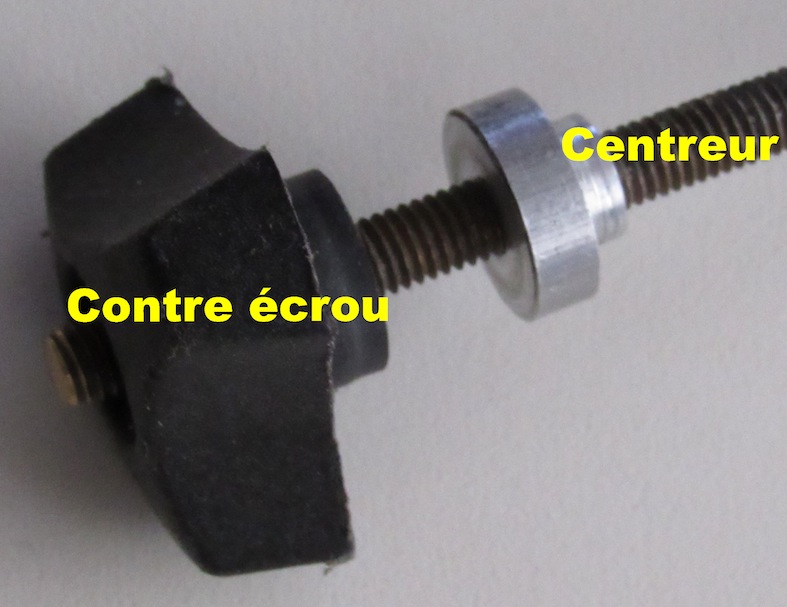 Donc dans ton cas pourquoi pas un disque entre centreur et contre écrou ?