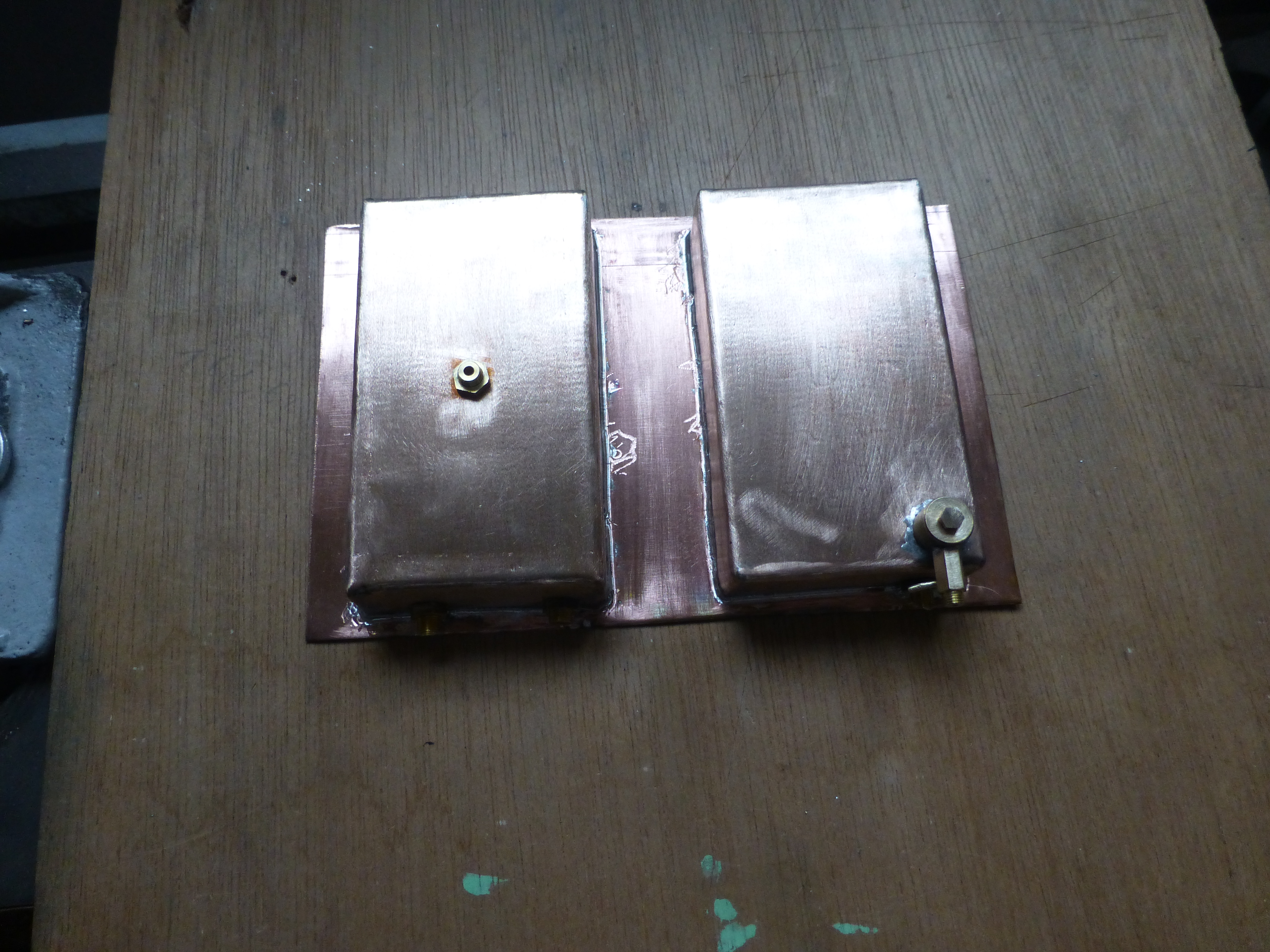 construction des réservoirs de carburant et liquide de refroidissement en cuivre qui seront positionnés sous le siège