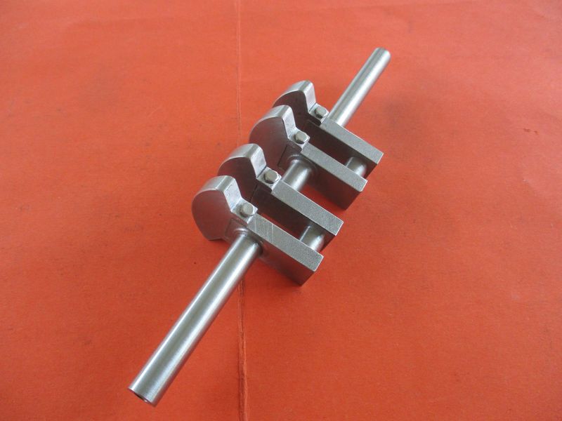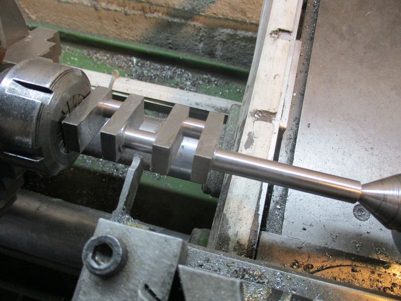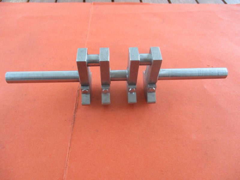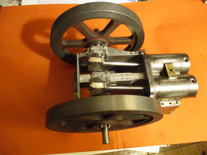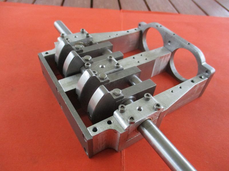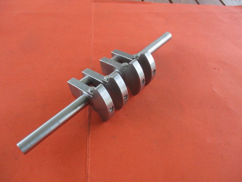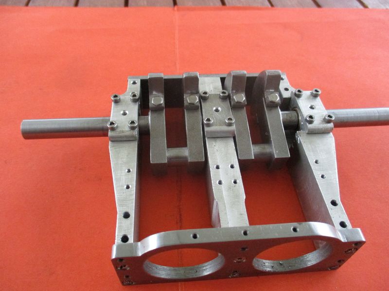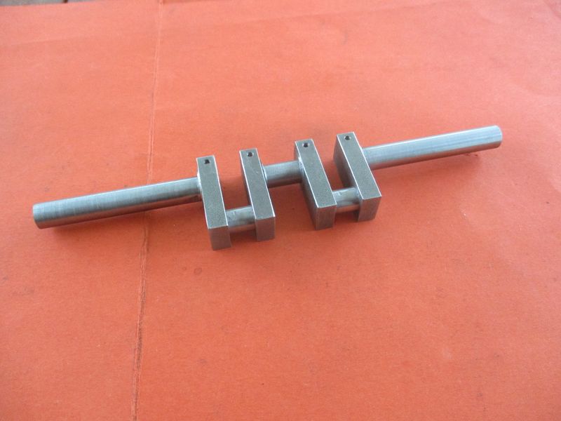 ;si j ai bien compris les 2 pistons vont avancer ensemble (et pourquoi pas )pour l usinage du vilebrequin Ok a partir d un méplat ,quand j ai fait celui du "contra Benz" comme toi j avais ébauché à la fraiseuse ensuite usiné au tour les embouts (en surcote ) ,j ai fait des "cimblot" avec les points de centre (les 2 perçages servent a l alignement avec des piges)