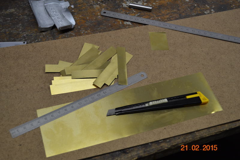 (Ph142 à 147) La mise en forme du réservoir de carburant nécessite d’abord la fabrication d’un gabarit en bois. Le pliage de la tôle du corps, ne présente pas de difficulté majeure. La tôle est en laiton de 10/10. L’extrémité s’avère plus complexe. En effet, le gabarit doit être en bois dur, puis la mise en forme se fait par martelage. Cela dure environ quatre heures pour un novice en carrosserie comme moi. Ensuite il faut ajuster les deux parties et souder à l’argent. Le reste n’est que découpe et ajustage des éléments tels que platine de fixation, goussets, brides, passage du filtre à air et bouchon de carburant.