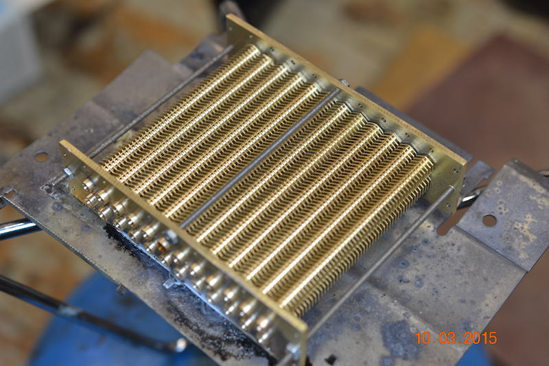 (Ph130 & 131) Pour la conception du radiateur, j’ai d’abord fait un essai avec un empilage de clinquant de 0.2mm. Mais le résultat c’est avéré catastrophique à la soudure à l’étain.