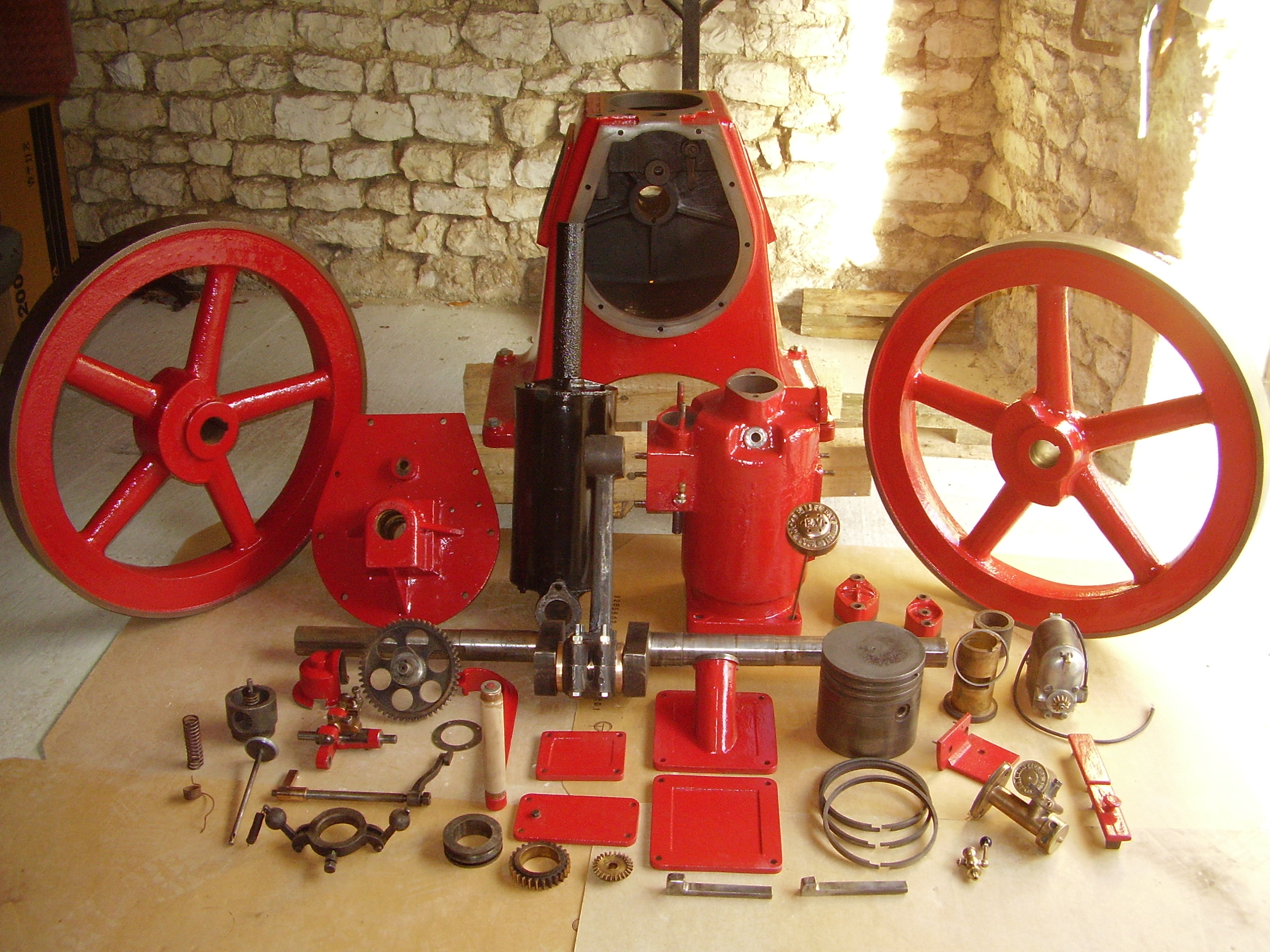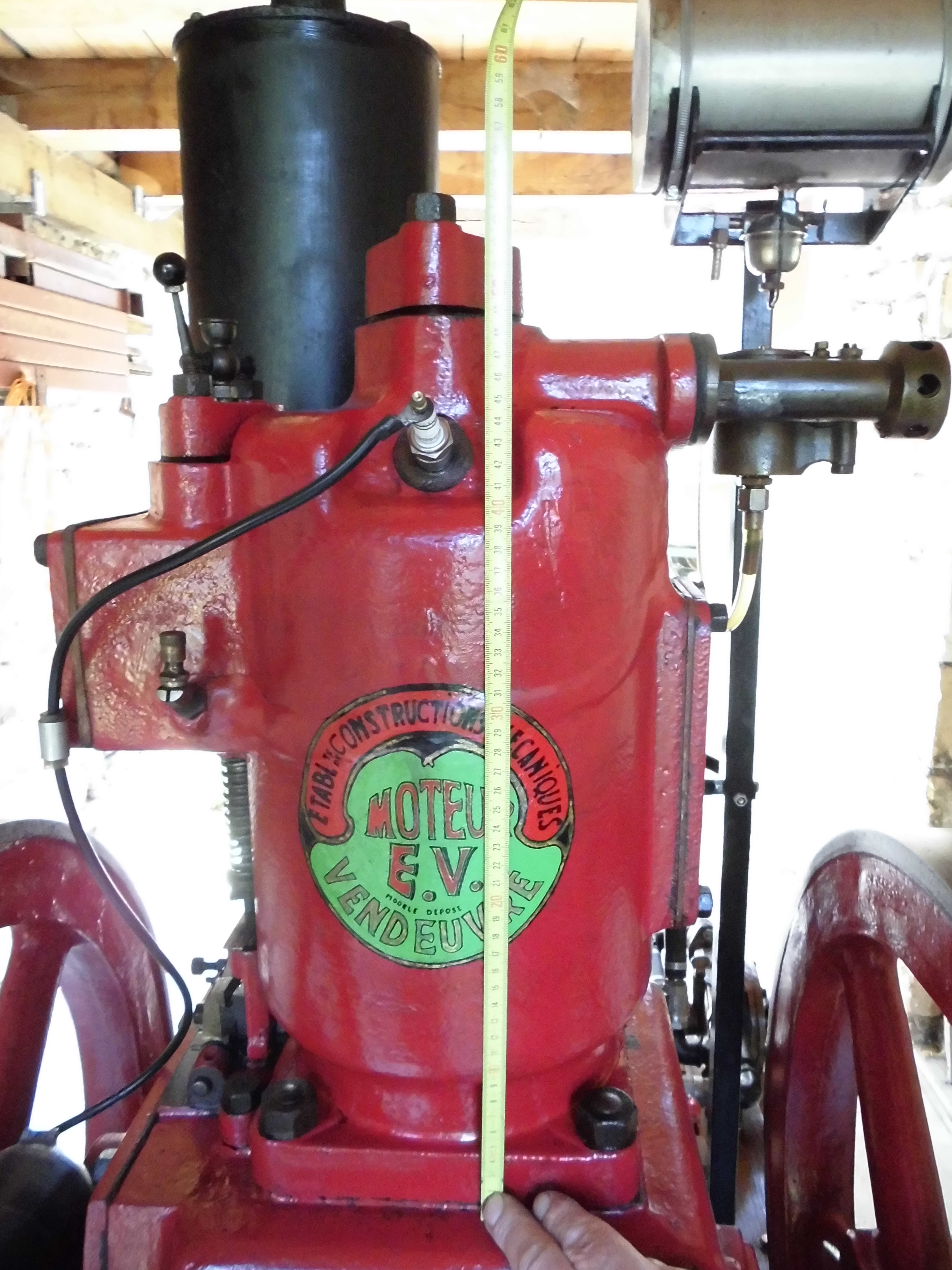 alesage de 30,course de 40, 28 cc ,Ø des volants 154 ,regulation hit&miss,soupape d'admission libre.