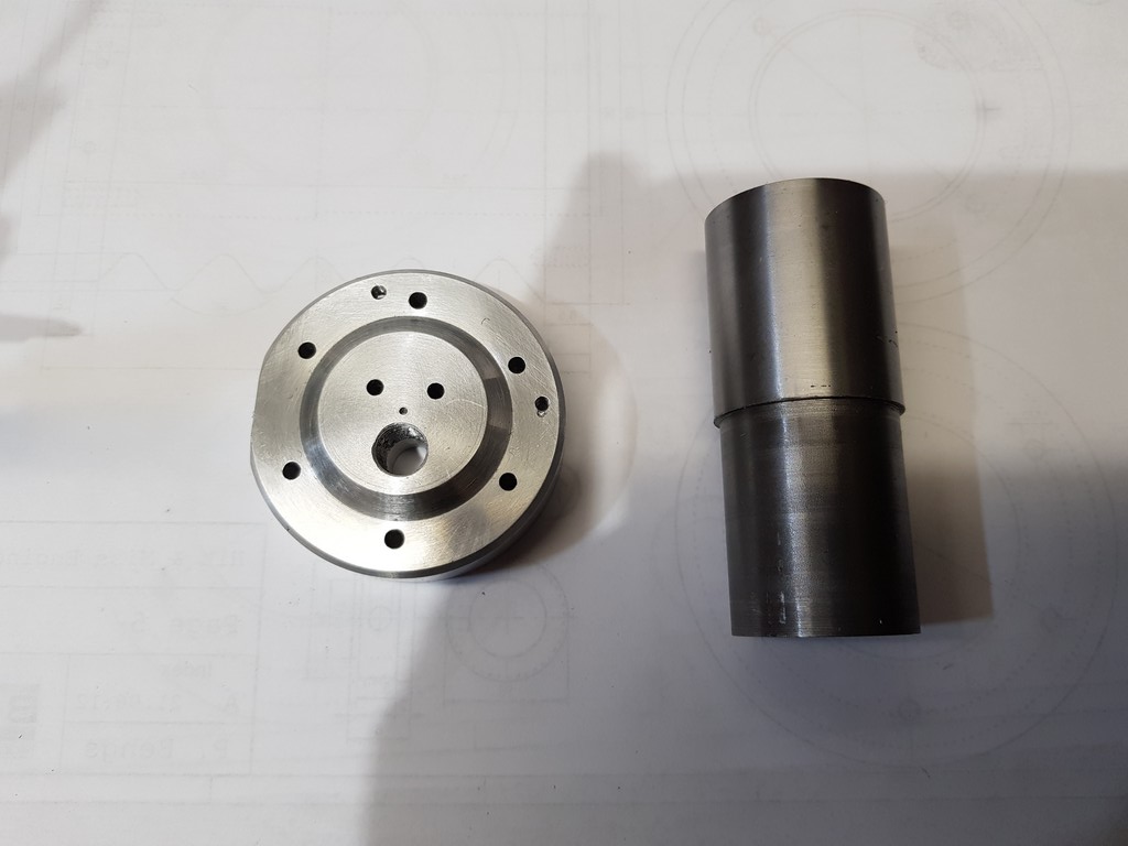 Afin d avoir le meilleur ajustage possible, j avais fait la finition en montant le piston sur un simblot (directement usiné dans le mandrin et sans démontage) afin de permettre le contrôle avec la chemise rectifiée (pour enlever le dernier pouillème avec du "1200~"et du pétrole), je ne sais plus si c'est noté sur le plan mais 1 ou 2 petites rainures sur le haut du piston aide bien à l'étanchéité (et améliore le graissage )