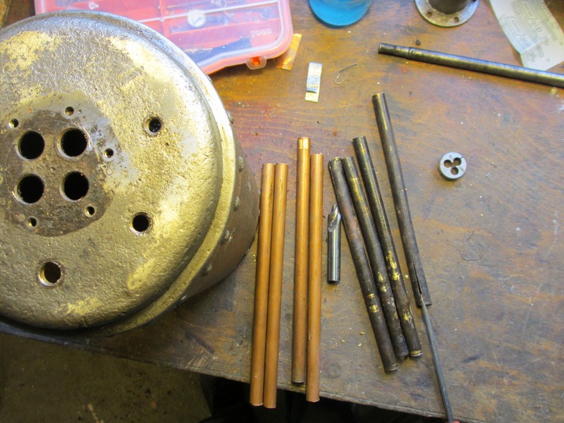 les tubes de fumées retirés, et les nouveaux en cuivre.