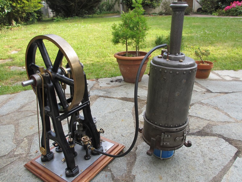 Si ces tests sont bon, et que cette chaudière est récupérable, cette pièce devrait convenir pour ma machine de style « Radiguet » que j’ai faite il y a 10 ans déjà et qui jusque là n’a tourné qu’à l’air comprimé ; ce qui amènera le poids total aux alentours de 25 kg…